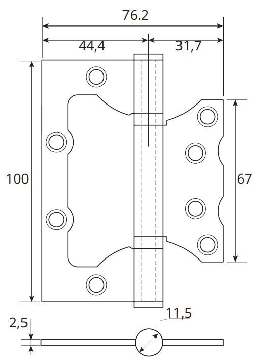 Эскиз накладной петли Avers 100-75-2,5-B2-CRM Размер: 308,9 кб -