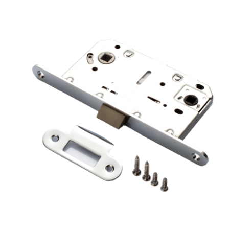ОписаниеЗащелка Renz LB 96 PL С (хром блестящий) является отличным вариантом защелки на двери внутреннего расположения. Тип механизма – сантехнический, что предполагает возможность одностороннего блокирования в закрытом положении. Материал изготовления язычка – прочный пластик: это позволяет существенно снизить шум при запирании. Замки данного типа рекомендованы для помещений с повышенными требованиями по звукоизоляции. Торцевая часть лицевой планки покрыты прочным слоем гальваники (глянцевый хром).