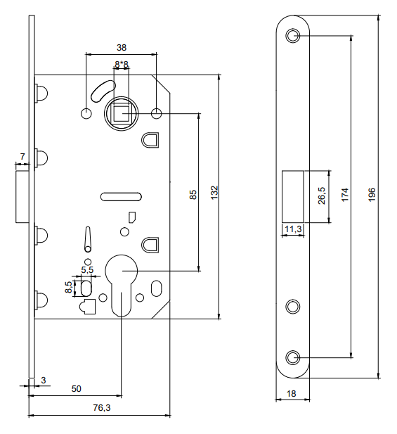 Замок врезной Code Deco 5300-MC-GMS
