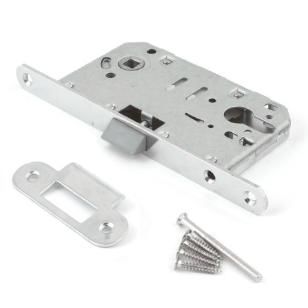 ОписаниеЗамок врезной Apecs 5300-Р-CR с пластиковым язычком, для межкомнатных дверей. Размеры корпуса идеальны для установки с дверными ручками на розетке в комплекте с накладкой на цилиндр или сантехническим фиксатором. Пластиковый язычок снижает шум при закрывании двери. Перестановка язычка для левых/правых дверей занимает всего 3 секунды и не требует каких-либо инструментов. Угол нажатия ручки: 30 градусов. Стойкое покрытие подходит для использования во влажных помещениях (ванная комната). Межосевое расстояние: 85 мм (евроцилиндр) / 90 мм (фиксатор WC). 500 000 циклов безотказной работы. Соответствие ГОСТу подтверждено сертификатом. Бюджетный выбор для тех, кому важна тишина.