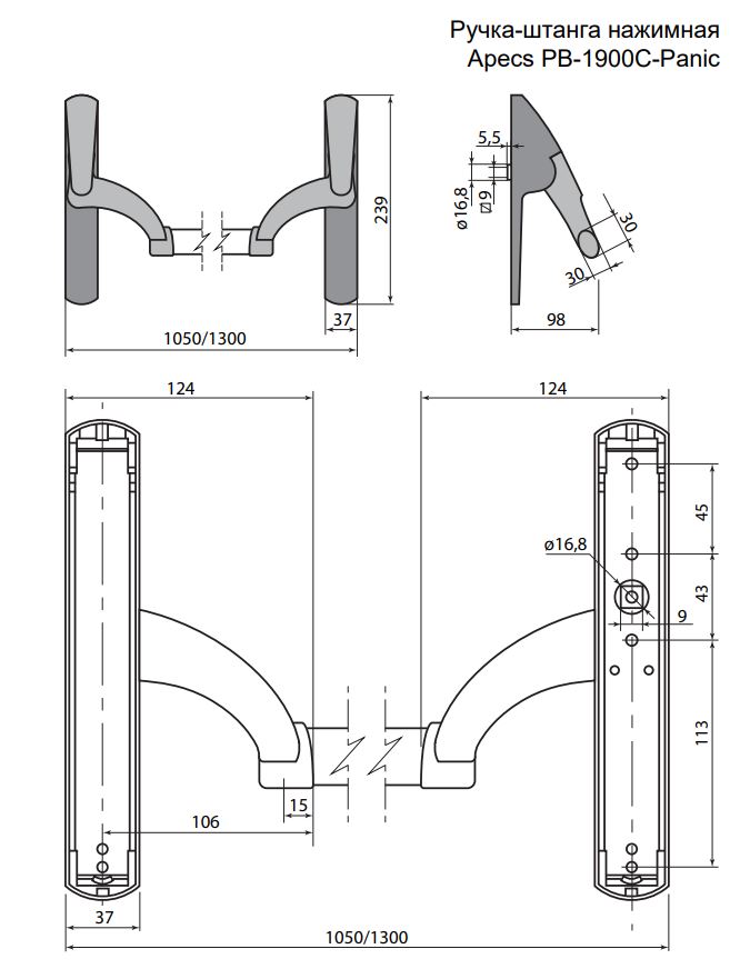 Ручка-штанга нажимная Apecs PB-1900C-Panic-BL/SL