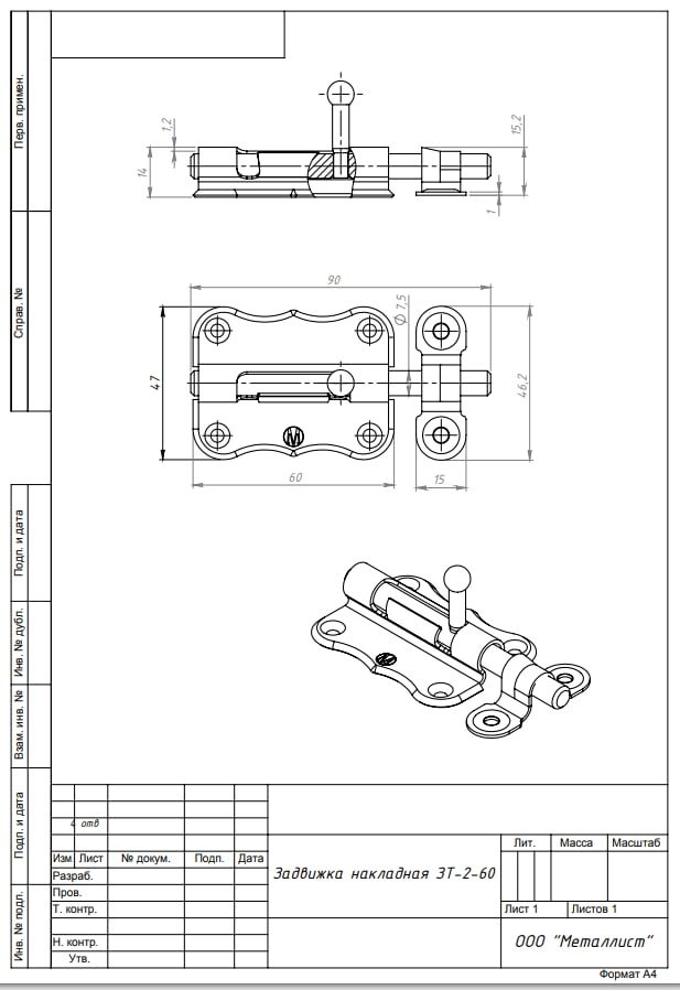 Задвижка накладная ЗТ2-60 полимер (100) мт