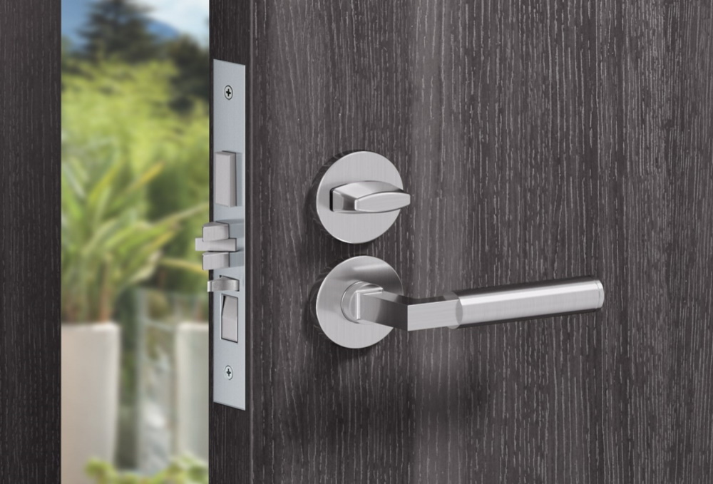 Данный вариант предназначен для плотной фиксации двери в закрытом положении. Ручка при этом монтируется во внутреннюю часть полотна. Что касается защелок, их существует три типа: