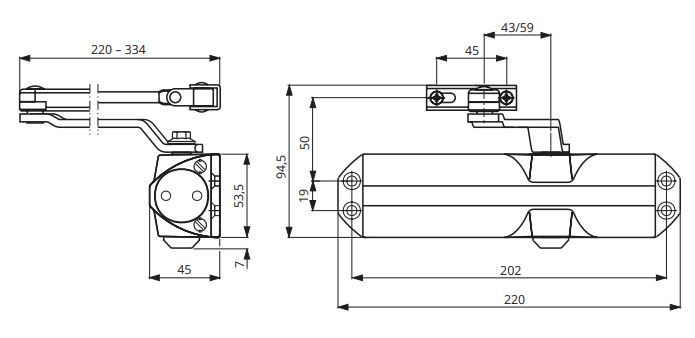 Доводчик дверной Apecs DC-68.2-4/1100/080-A2-SL