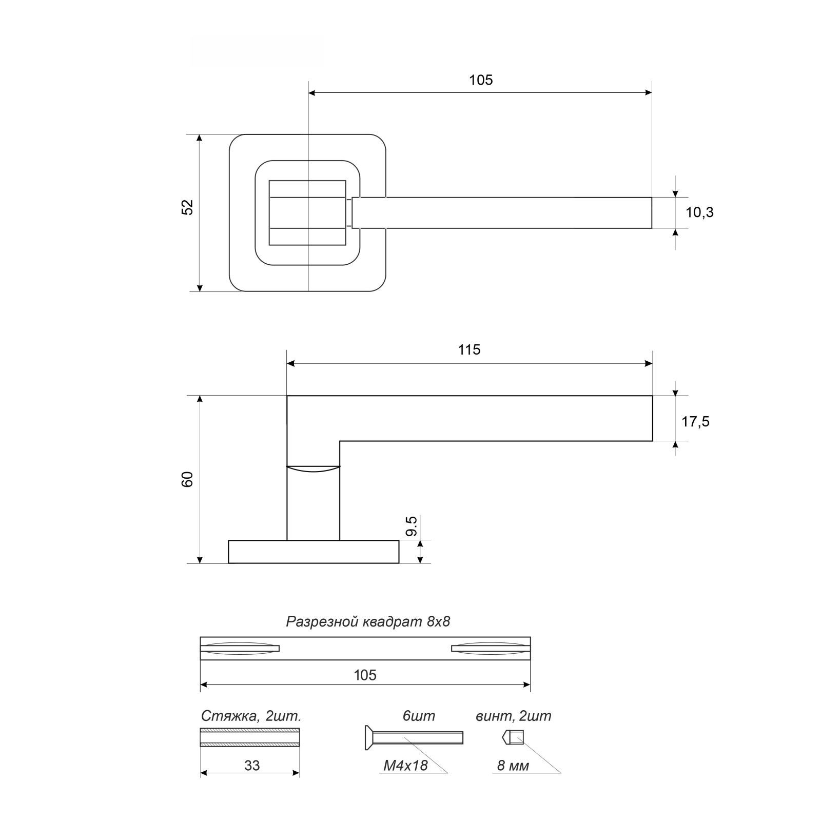АЛЛЮР АРТ "ВЕНСАН" BL / BL (26150) матовый черный Комплект ручек (20)