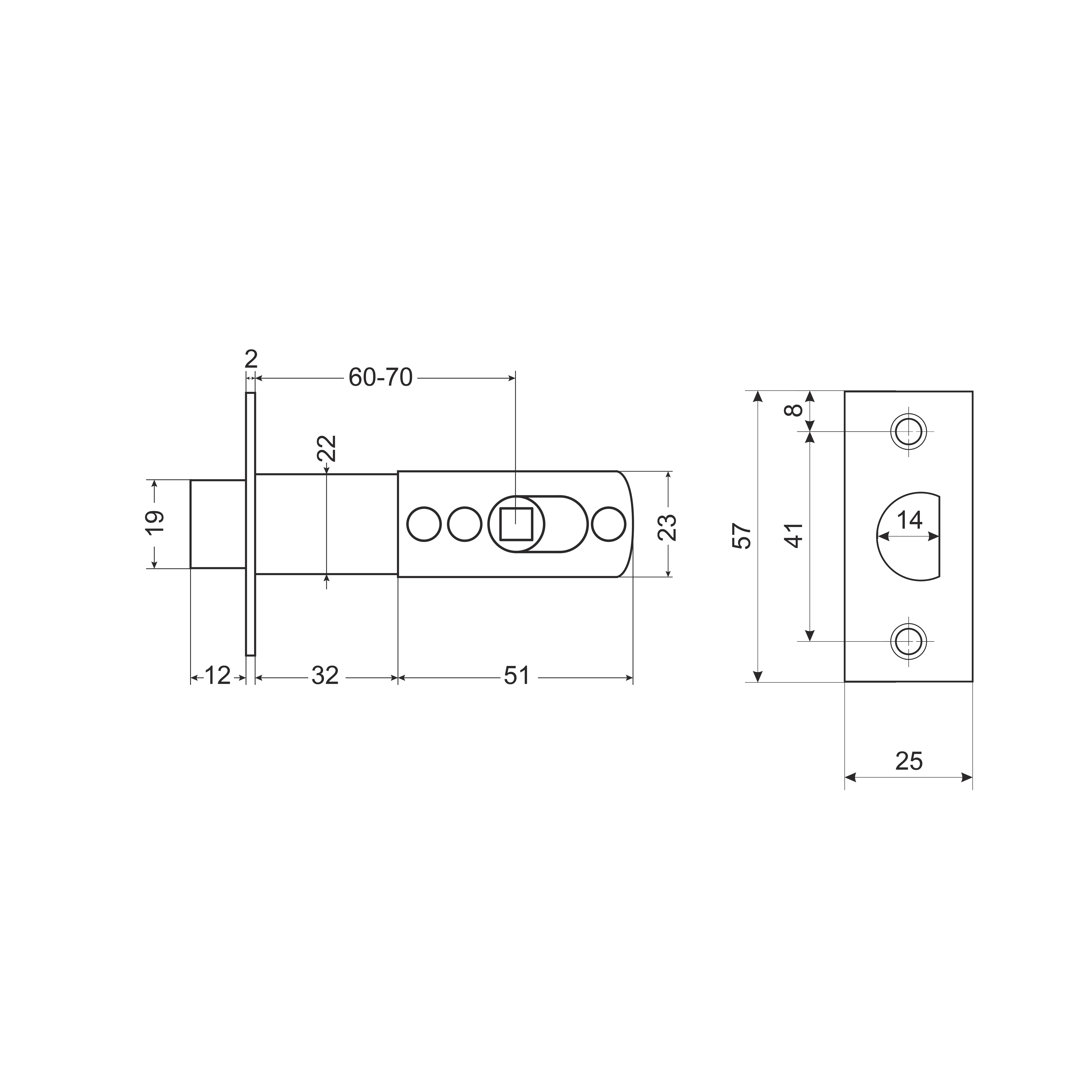 Защёлка АЛЛЮР корпус для 5560,5562,5564 BK,PS CP хром. Скругленный ригель размерами 19х14 мм, с вылетом 12 мм. Хром. Габариты корпуса - 83х23х20 мм. Бэксет максимальный - 70 мм; Бэксет минимальный - 60 мм.