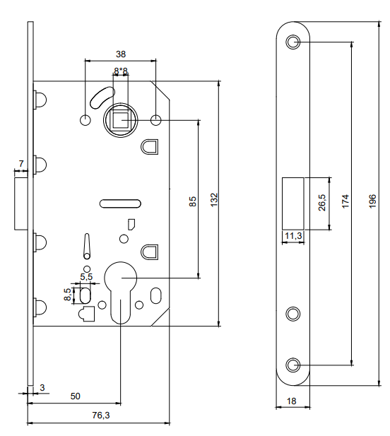 Замок врезной Code Deco 5300-MC-BLM