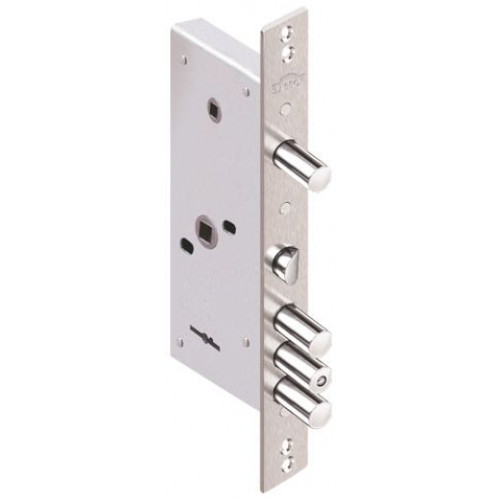 1.02.25 Замок врезной ЛАЗУРИТ никель, сувальдный- стержни 3шт. диаметр 16мм Под фалевую ручку задвижка