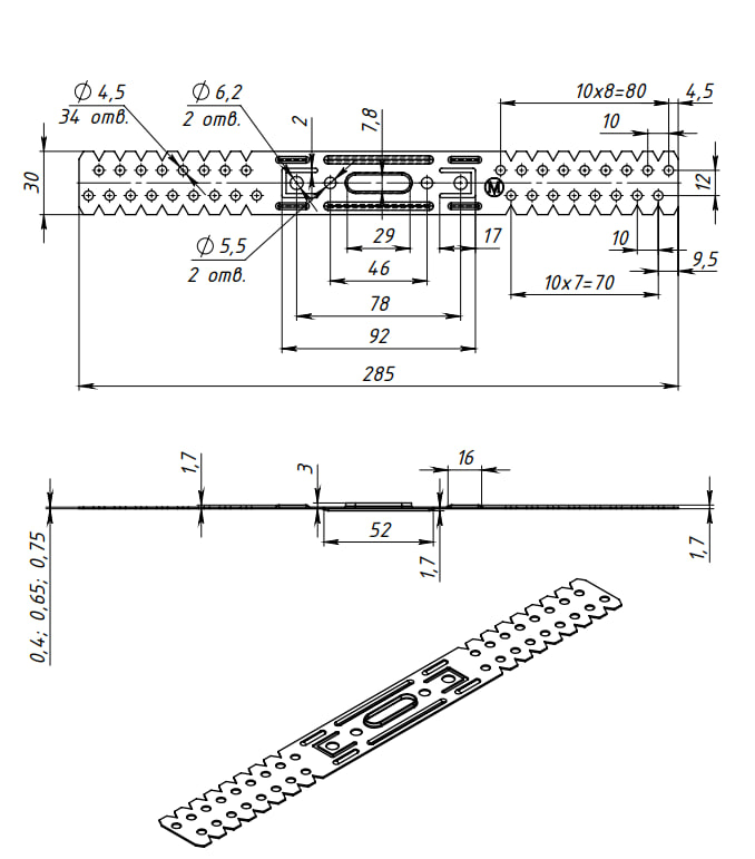 Подвес прямой проф.П60*27 (0,8мм) цинк (250) мт