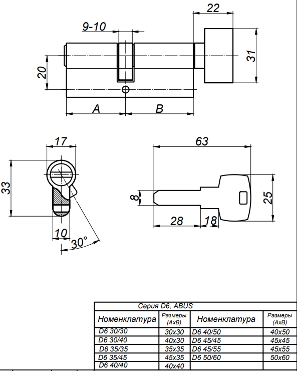 Цилиндровый механизм ABUS KD6MM Z40/K50KD W/5 LONG KEY