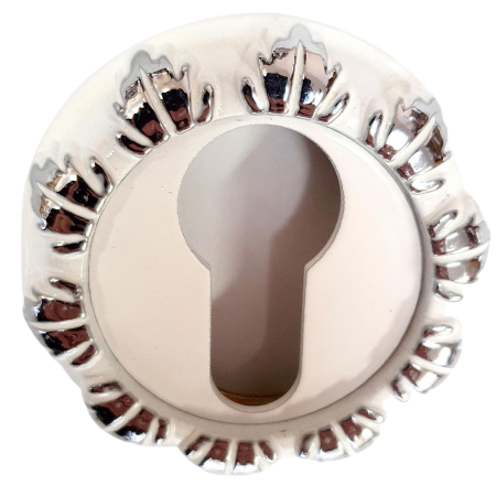 ОписаниеНакладка RENZ ET 10 SW/CP (супер белый/хром блестящий) на цилиндровый механизм придаёт эстетичный вид, закрывает неровности выпила установочных отверстий после монтажа замка.