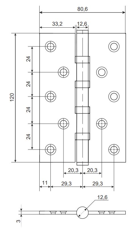 Петля врезная Apecs 120*80-B4-Steel-GMS