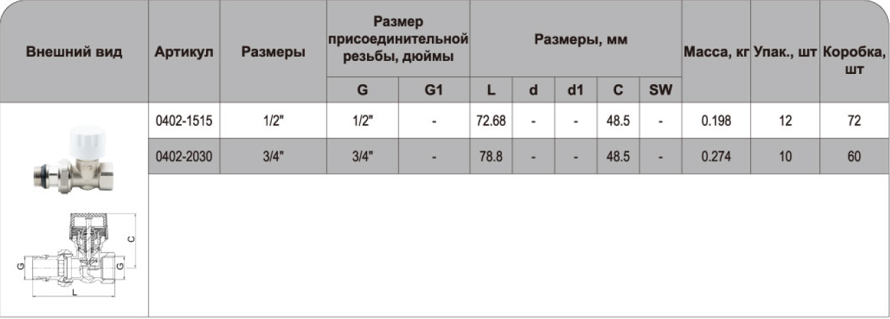 Клапан термостатический, прямой, 0402-2030, 3/4" (3/4")