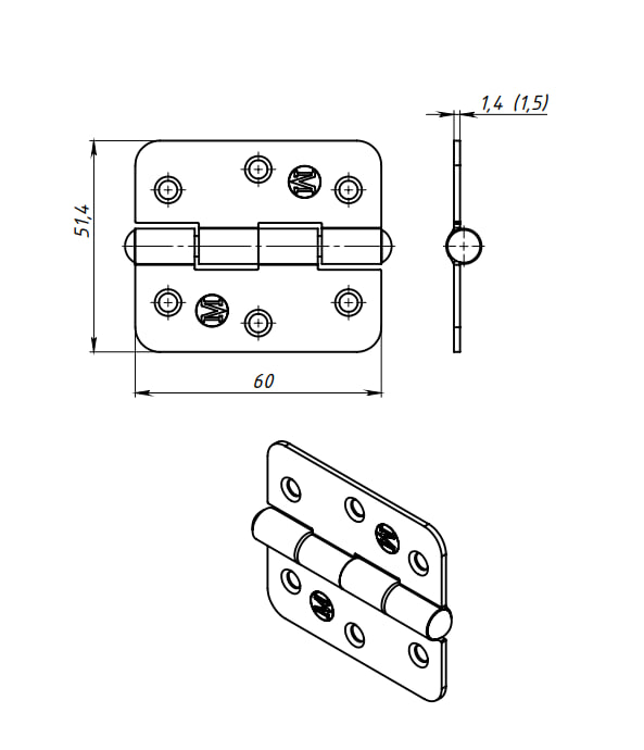 Петля накладная ПН5-60 пол.бронза (100) мт