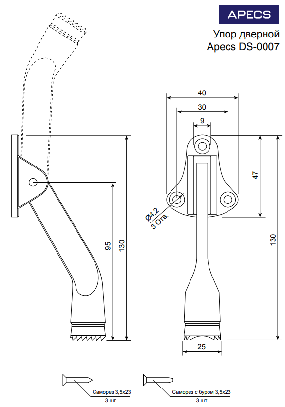 Упор дверной Apecs DS-0007-W (козья ножка)